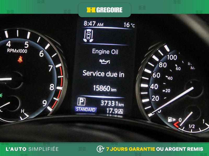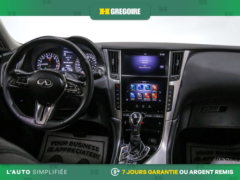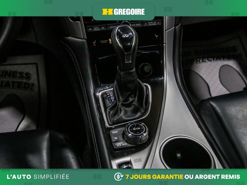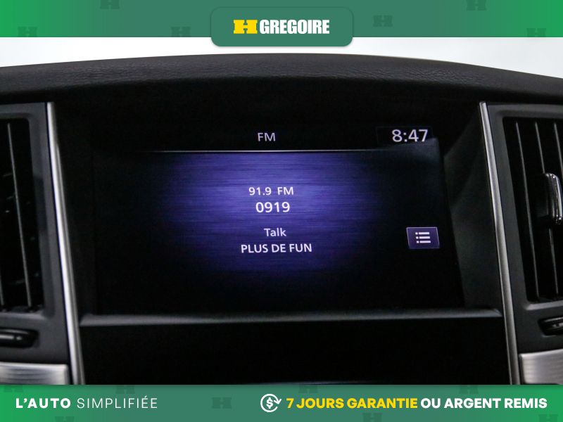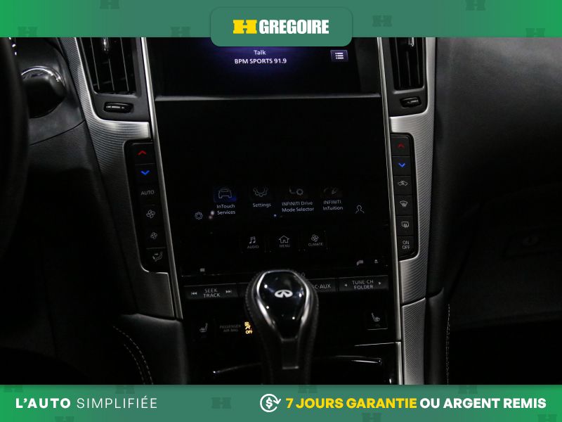 • Radio: INFINITI InTouch Dual HD Display System -inc: Apple CarPlay and Android Auto including Siri Eyes Free, Bluetooth hands-free phone system and text messaging assistant, 6 speaker audio system w/AM/FM/HD radio and CD, streaming audio via Bluetooth, Wi-Fi hotspot, SiriusXM satellite radio w/advanced audio features w/3-month complimentary trial and centre console auxiliary input