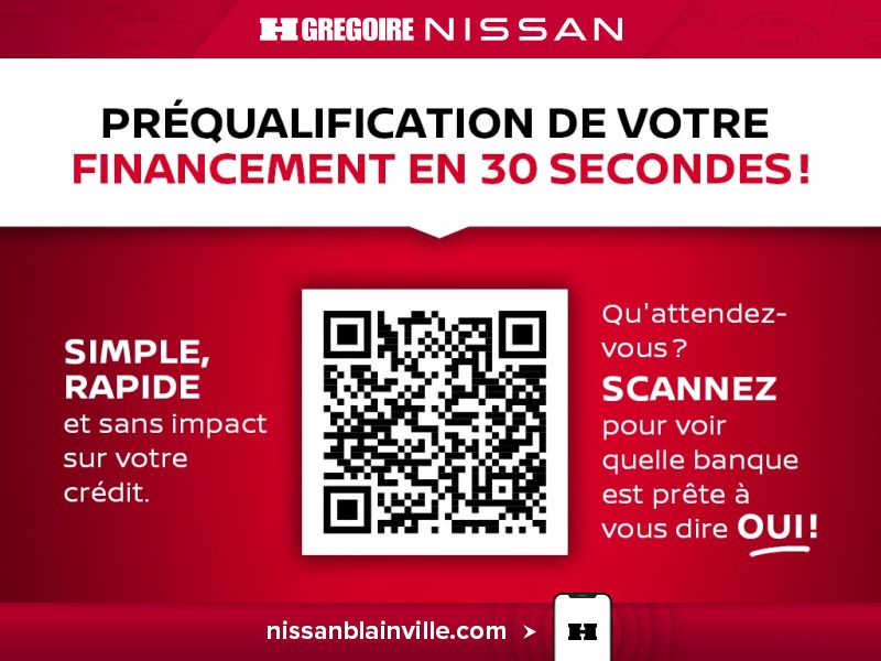 CERTIFIÉ ÉCONOMISEZ 6 203$! BAS KILOMÉTRAGE, BALANCE DE GARANTIE, Caméra de recul, Bluetooth, Sièges Chauffants Restez a la maison - ACHAT 100% EN LIGNE grace a HGregoire Nissan. Vous trouverez le VEHICULE dont vous revez a un PRIX COMPÉTITIF. Nos offres exclusives sont disponibles a des taux de financement avantageux. De plus, comme nous faisons partie du Groupe HGregoire, nous vous garantissons la MEILLEURE OFFRE pour votre vehicule d'echange, peu importe le modele. Faites vous plaisir des AUJOURD'HUI. Votre vehicule vous attend chez HGregoire Nissan! Cette offre comprend tous les rabais applicables. Transport et preparation non inclus. https://www.nissanblainville.com/fr-stk/BR5831 - CERTIFIED SAVE $6,203! LOW MILEAGE, GUARANTEE BALANCE, Back-Up Camera, Bluetooth, Heated Seats Stay at home - BUY YOUR VEHICLE 100% ONLINE with HGregoire Nissan. You will find the VEHICLE of your dreams at a COMPETITIVE PRICE. Our exclusive offers are available at advantageous financing rates. Moreover, since we are part of the HGregoire Group, we guarantee you the BEST OFFER for your trade-in vehicle, regardless of the model. Please yourself TODAY. Your vehicle is waiting for you at HGregoire Nissan! This offer includes all applicable discounts. Transportation and preparation not included. https://www.nissanblainville.com/en-stk/BR5831
