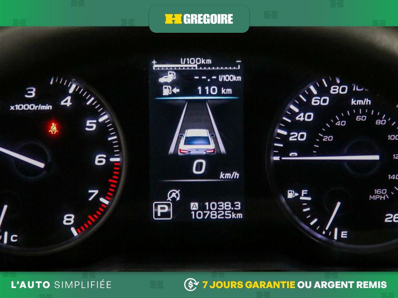 Transmission : à variation continue Lineartronic -comprend : convertisseur de couple à blocage, palettes de changement de vitesse, modes normal et manuel de passage des vitesses à 8 vitesses, verrouillage du levier sélecteur et système de transmission intégrale symétrique à prise constante Subaru avec embrayage de transfert multidisque à contrôle électronique